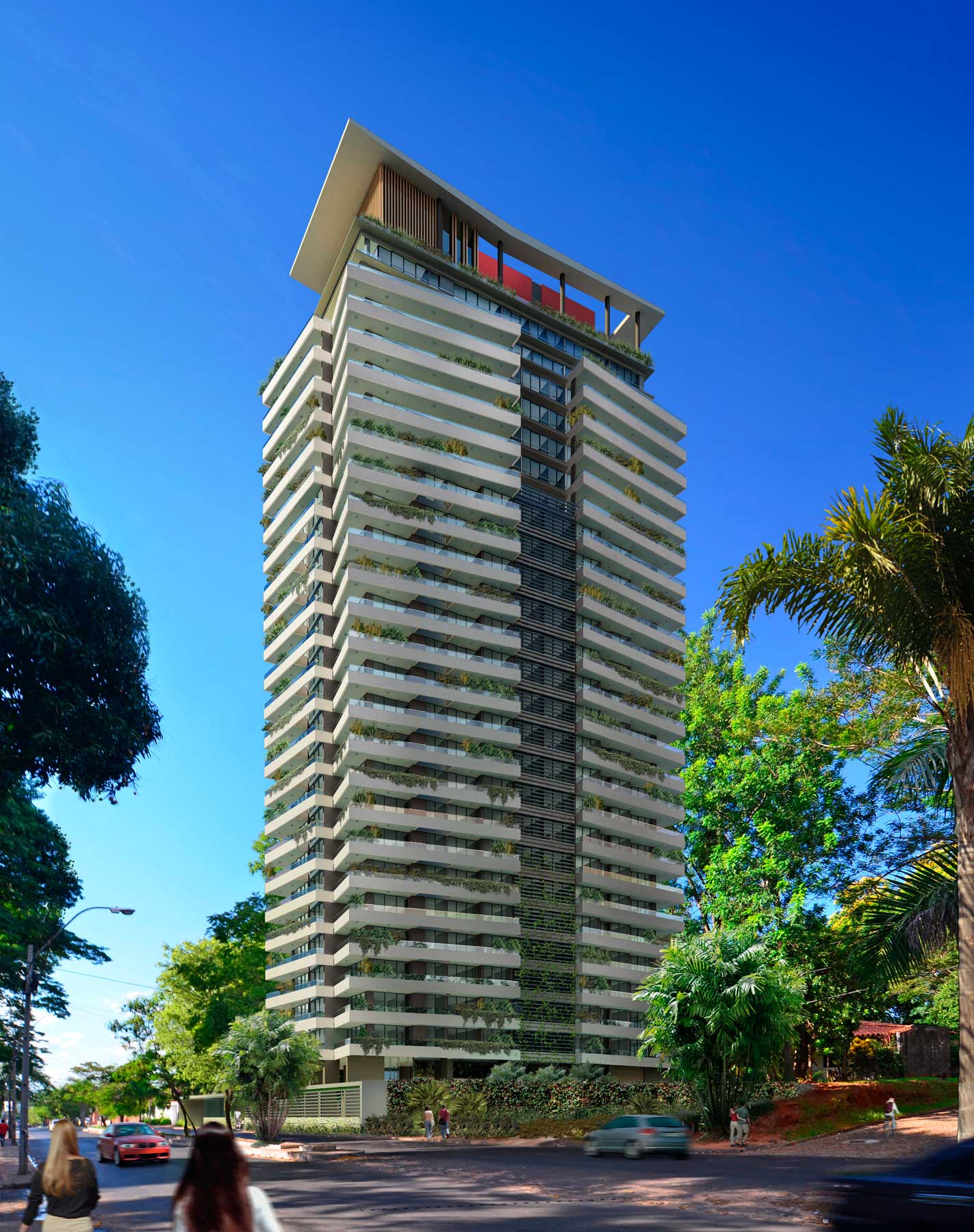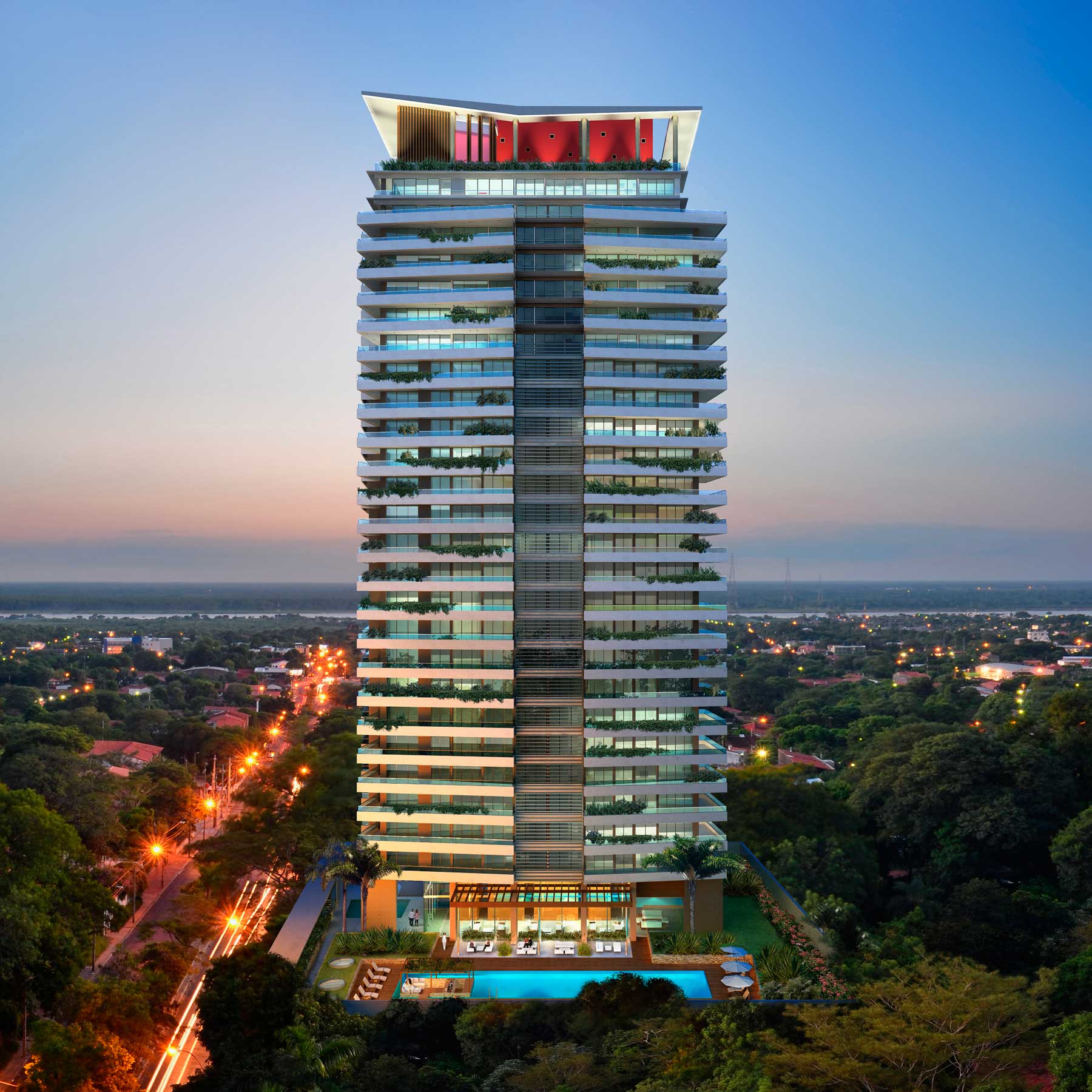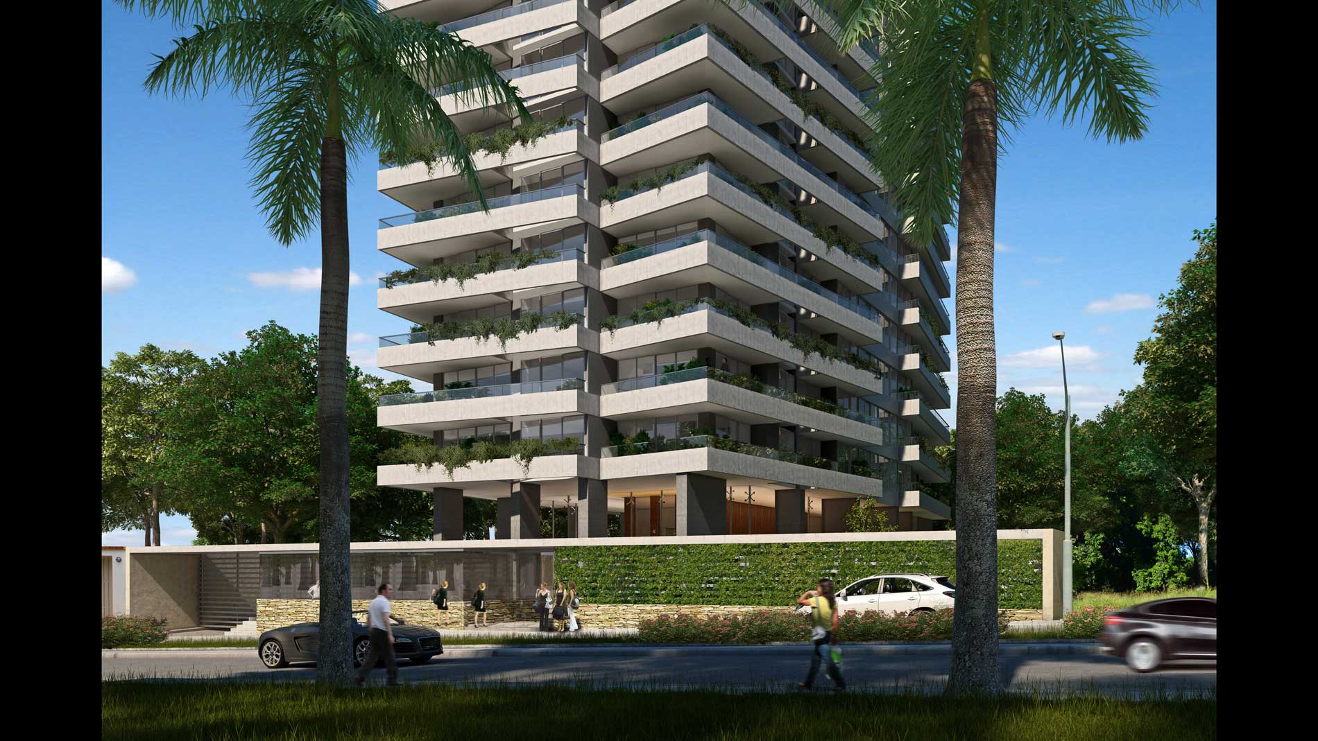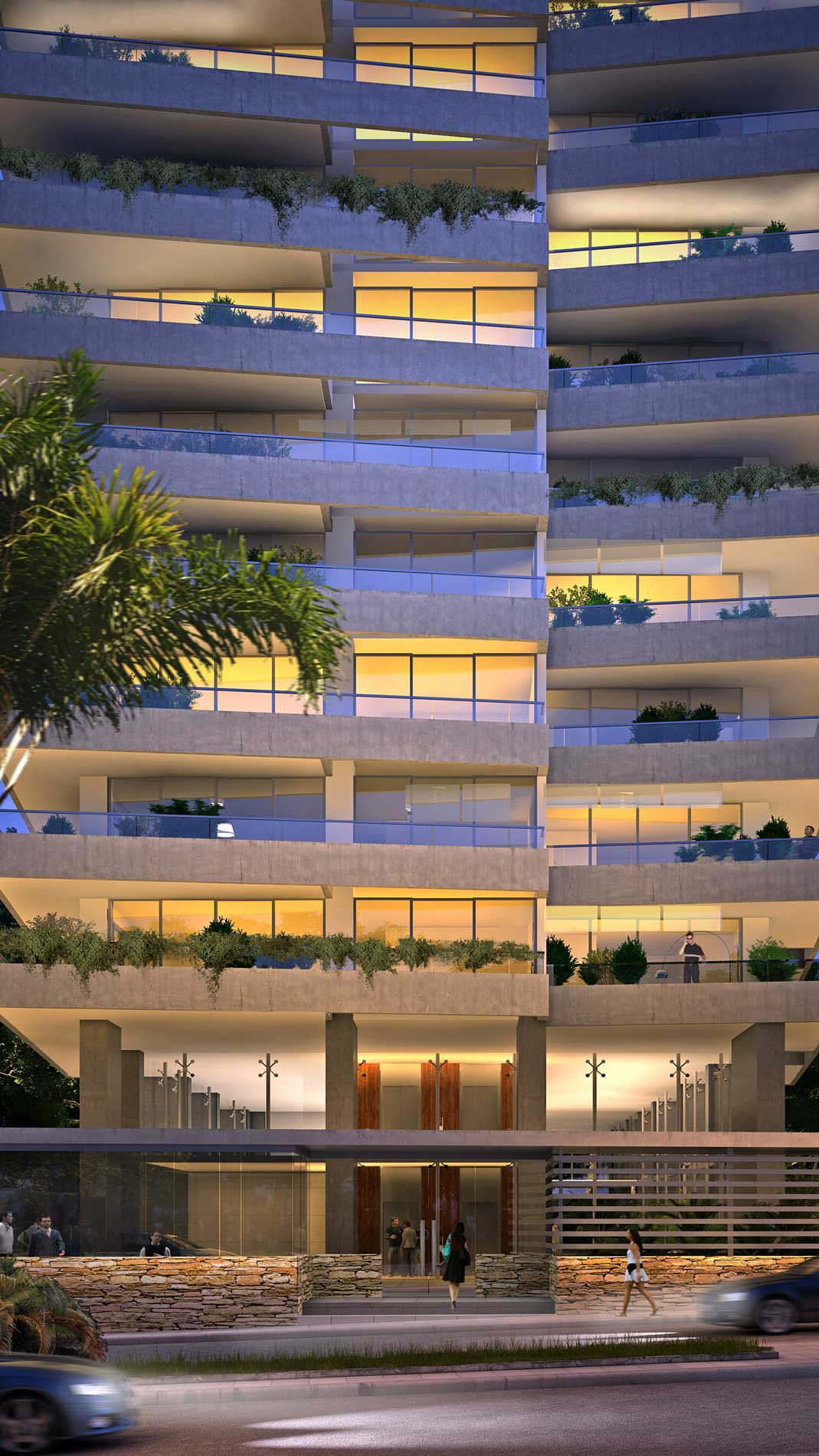 Se trata de un conjunto edilicio formado por planta baja libre, 26 pisos altos y 3 subsuelos, que aloja exclusivas unidades de vivienda, cocheras, bauleras, locales de servicios generales, amenities, hall de acceso peatonal, jardín con solárium y piscina, azotea, sala de máquinas y tanques.