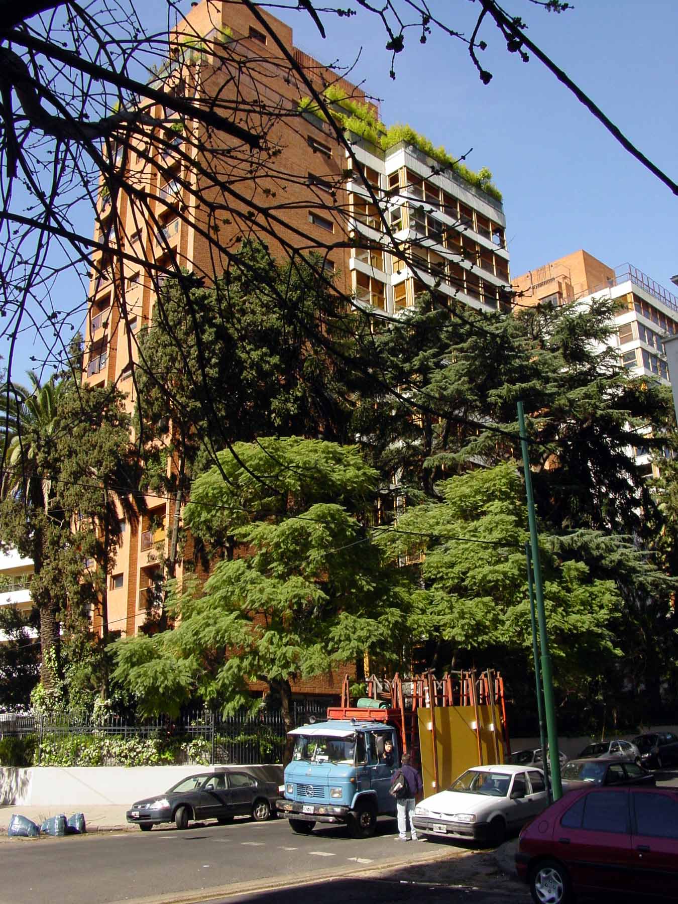 En un predio de 3.600 m2 se construyeron dos edificios en torre dejando libre un gran parque de 2.800 m2 con una añosa arboleda donde se proyectaron una piscina y una cancha de tenis, equipamientos que fueron transformándose en clásicos para este tipo de obras.