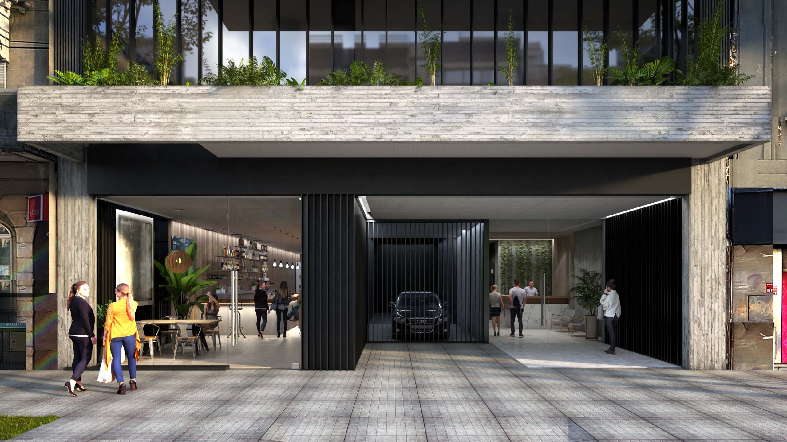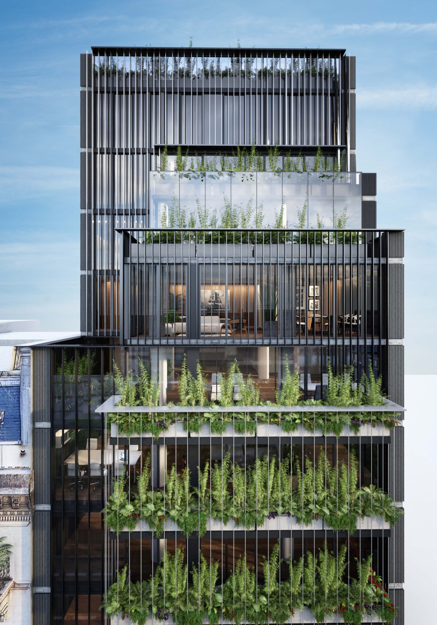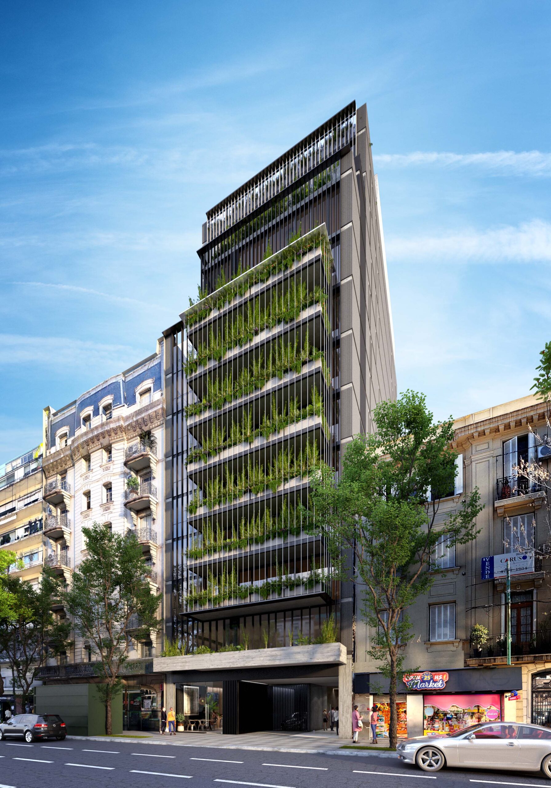 En este contexto el edificio emerge como una propuesta de arquitectura contemporánea rigurosa y elegante. Con tres subsuelos para cocheras, el proyecto se eleva 11 pisos y remata en una terraza con vistas abiertas.