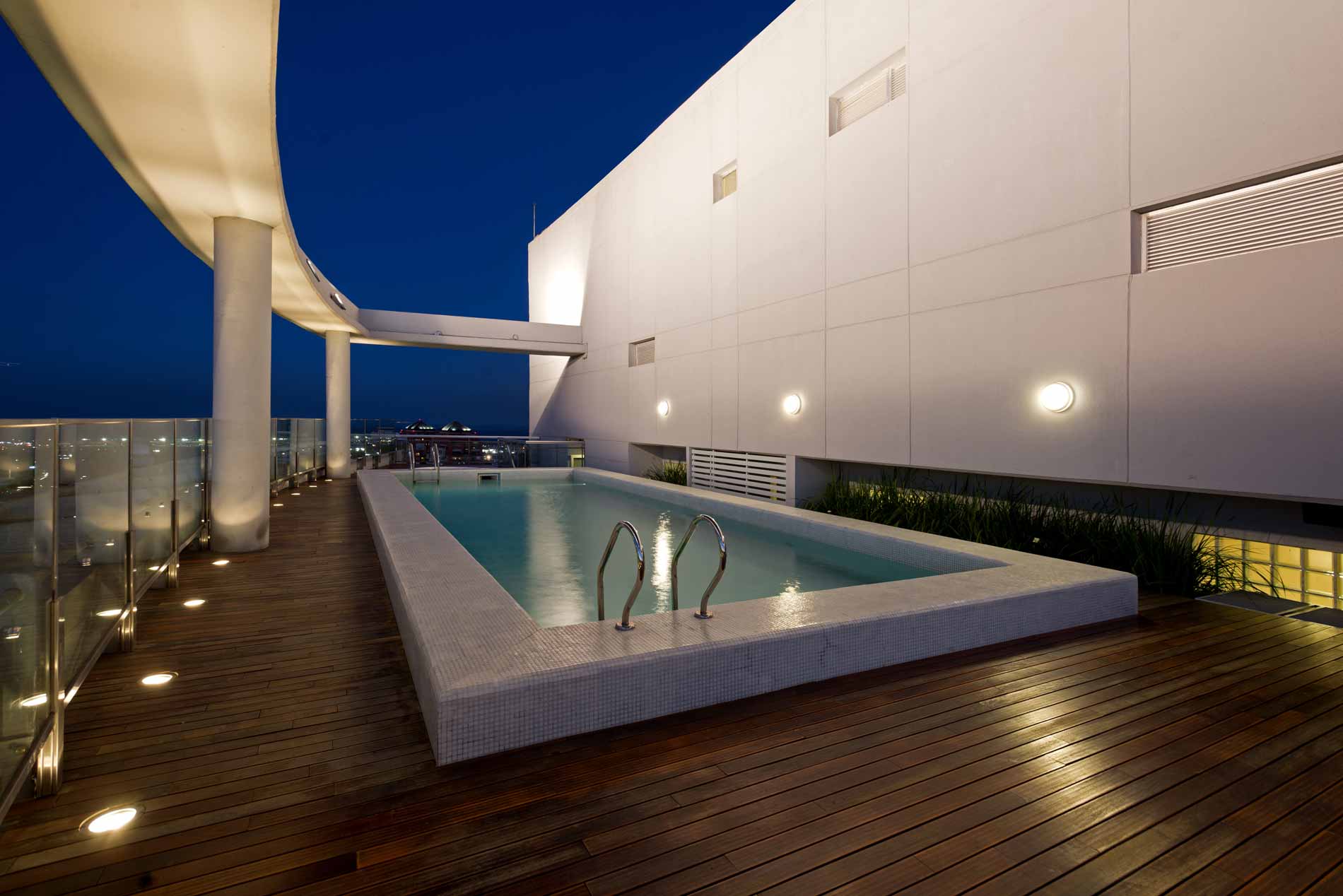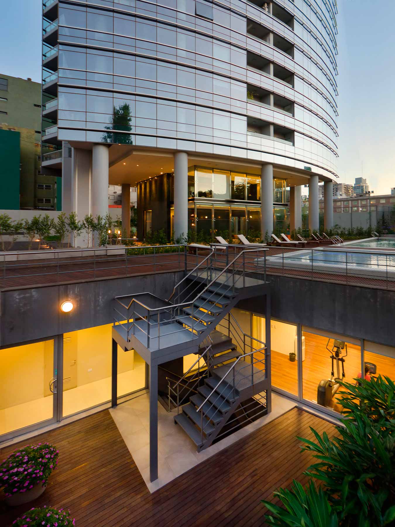 Se trata de un conjunto edilicio formado por planta baja libre, 28 pisos altos y 2 subsuelos, que aloja exclusivas unidades de vivienda, cocheras, bauleras, locales de servicios generales, amenities, hall de acceso peatonal, terraza con solarium y piscina, unidad de encargado, azotea, sala de máquinas y tanques.